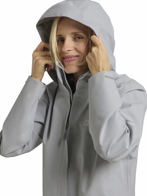 Su geçirmez fermuarlar ve ayarlanabilir sabit kapüşon, rüzgar ve nemden korurken, kapüşon isterseniz yakaya gizlenebilir. Ayarlanabilir alt kenar sayesinde istediğiniz gibi uyum sağlayabilir, iki cep ise hem ellerinizi sıcak tutar hem de küçük eşyalarınızı taşımanıza olanak tanır.