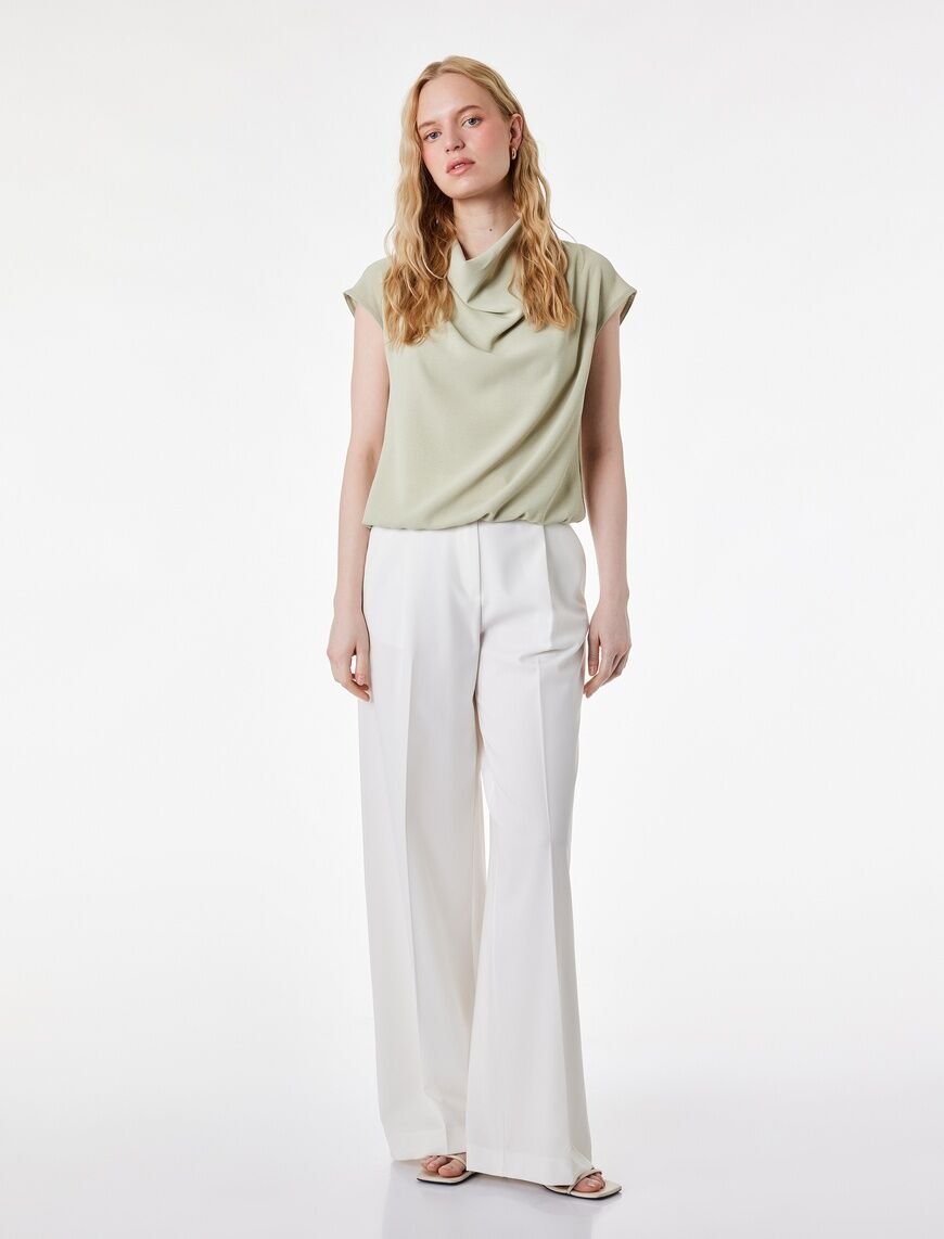 Dökümlü Yaka Detayı: Boyun ve dekolte bölgesinde zarif bir akış yaratarak sıradan bir bluzu daha şık ve iddialı bir hale getirir.