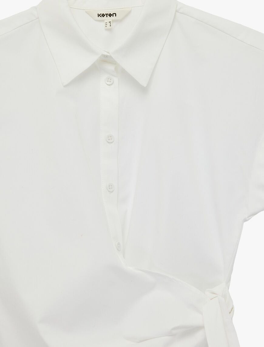 Koton’un bu özel tasarımı, klasik gömlek anlayışına taze ve enerjik bir yorum getiriyor. Saf pamuklu poplin kumaşın sağladığı ferahlık, modern "kap kol" kesimi ve ön kısımdaki stil sahibi bağlama detayıyla birleşiyor. Ekru tonunun verdiği doğal şıklık sayesinde hem plaj şıklığında hem de şehirli kombinlerde kendine yer bulan bu gömlek, vücuda oturan (slim fit) kalıbıyla feminen hatları ön plana çıkarıyor.