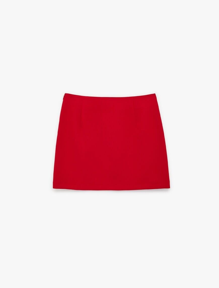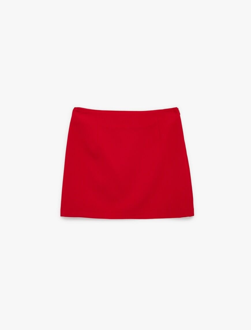 Koton’un bu mini eteği, minimalizmi cesur bir renkle harmanlıyor. Krep kumaşın diri duruşu sayesinde formunu gün boyu koruyan ürün, "A-Kesim" (evaze) yapısıyla belinizi vurgularken aşağı doğru hafifçe genişleyerek konforlu bir hareket alanı sunar. Klasik mini etek boyu, kırmızının enerjisiyle birleştiğinde hem günlük tişörtlerle hem de şık gömleklerle yapılabilecek onlarca farklı kombin seçeneği sunuyor.