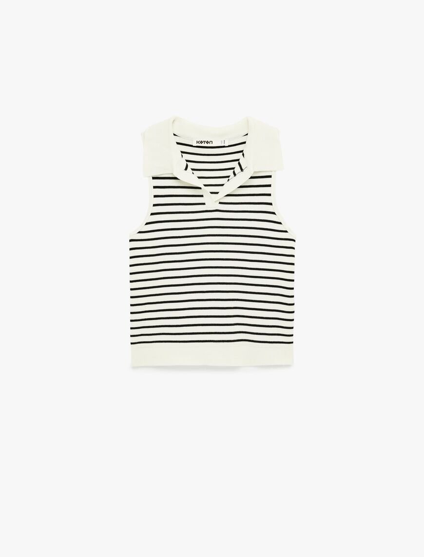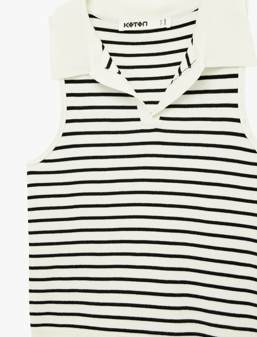 Koton Polo Yaka Kolsuz Çizgili Triko Bluz - Siyah/Beyaz Çizgili