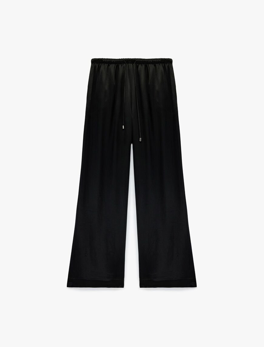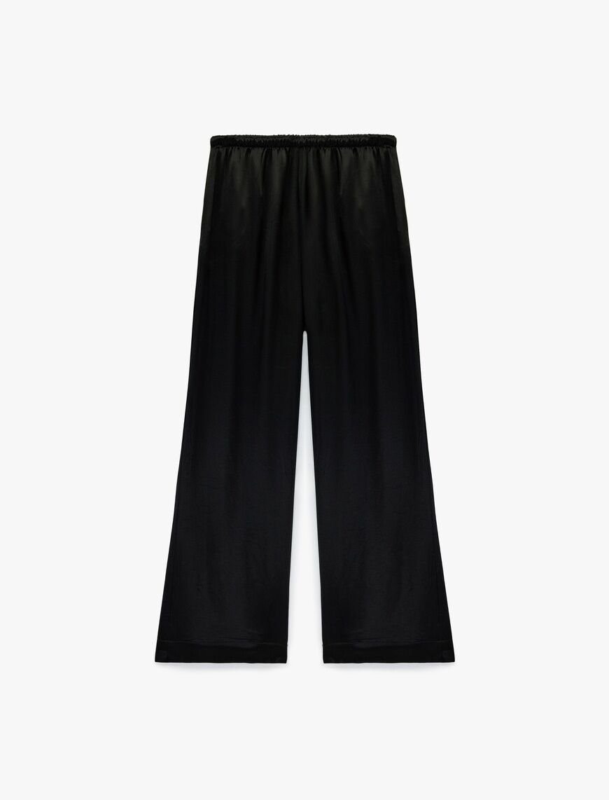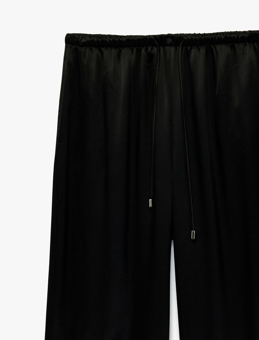 Koton Beli Bağlamalı Bol Paça Saten Pantolon - %100 Viskon Siyah