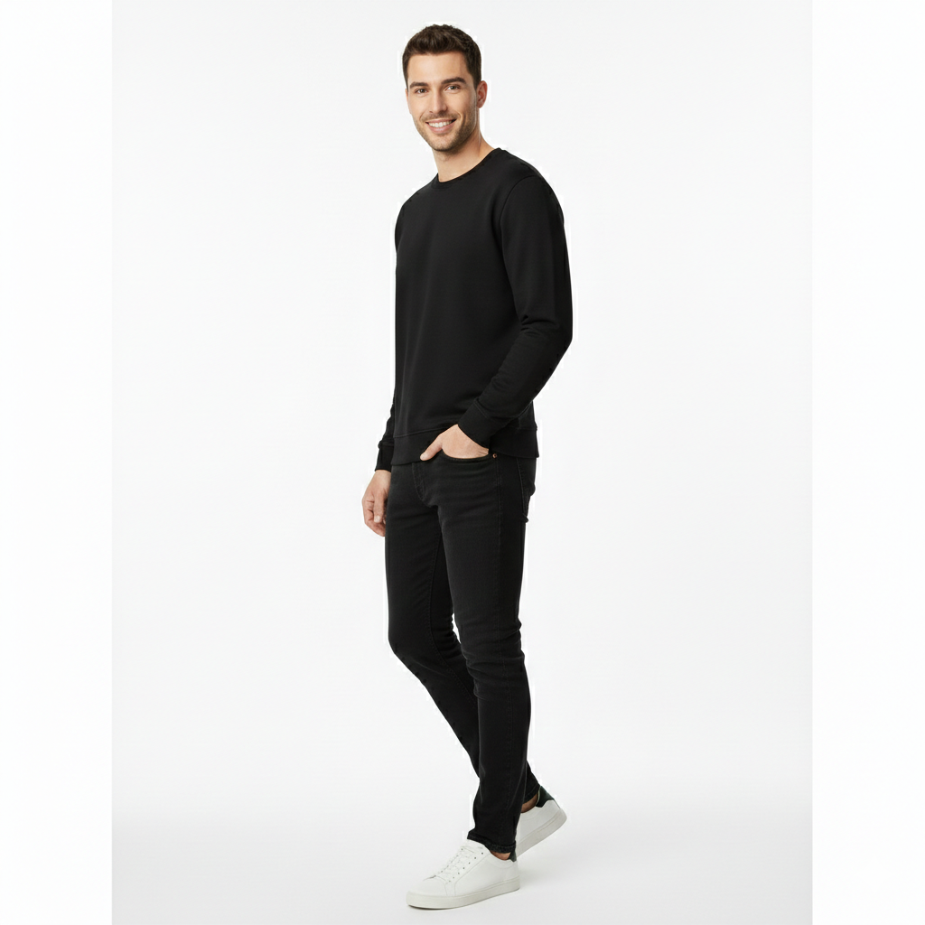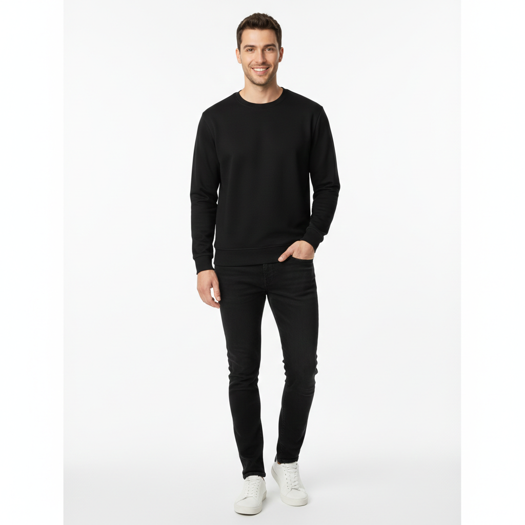 Prime Pamuklu Sweatshirt Bisiklet Yaka Standart Rahat Kalıp (Regular Fit) Erkek/Kadın/Unisex Siyah - XXL