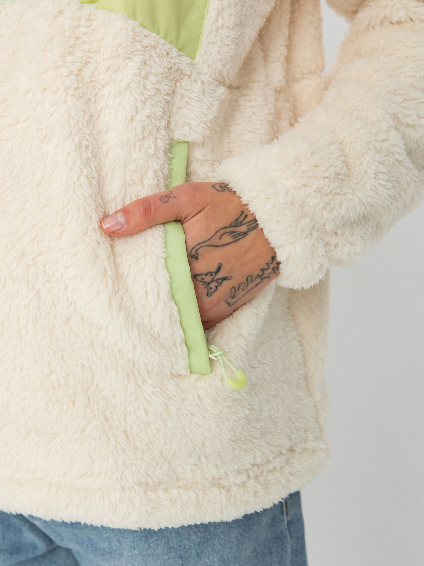 Soğuk havalar geldiğinde tarzınızdan ödün vermeden sıcak kalmak ister misiniz? %100 geri dönüştürülmüş polyesterden üretilmiş sherpa kumaşı ile bu polar ceket, doğaya saygılı olmanın yanı sıra sizi sıcacık tutar.